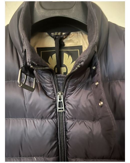 Belstaff - Circuit Dark Ink Jacket Size: S In brand new condition with tags. Features: : 2 Outer buttoned pockets, 1 internal buttoned pocket : Belstaff brand logo on the left arm : Water repellent filled with light weight down : Elasticated waist band : Neck collar fastening (Includes Belstaff hanger)