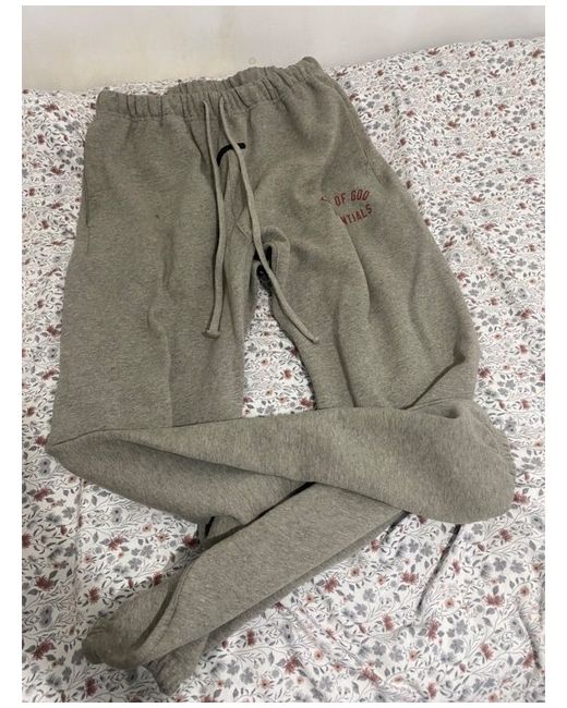 This essential tracksuit set includes a long-sleeve hoodie with a round neckline and drawstring closure, made from cosy cotton fleece fabric in a stylish grey colour. The 2-piece set is perfect for men's activewear, suitable for winter seasons and gym training. The hoodie features a logo accent, and the tracksuit is machine washable for easy care. The size S set is ideal for men looking for a comfortable and versatile activewear option, from the brand Essentials.