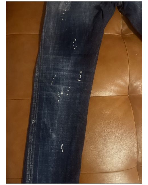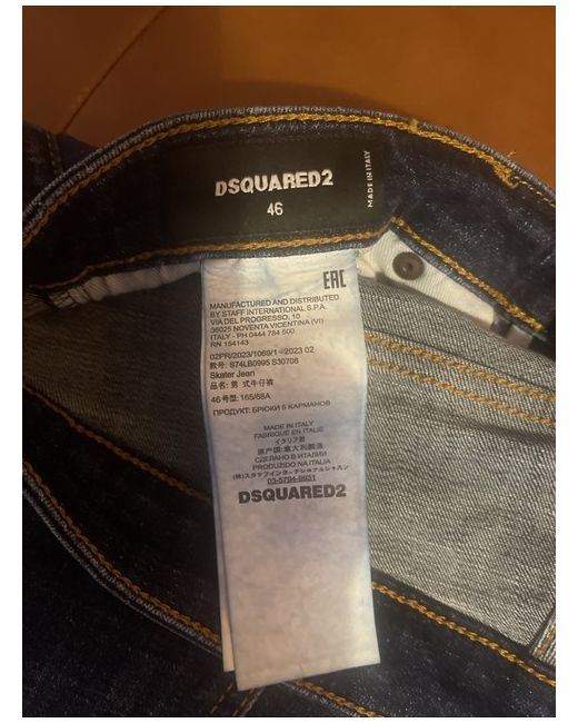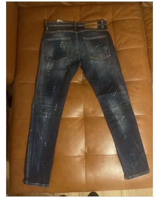 This product is a pair of Dsquared2 Men's Skater Jeans in size IT 46. Made from cotton denim in a classic blue colour, these jeans feature a button closure and a 5-pocket design. The skinny style and logo accents make them a fashionable choice for the spring season. Machine washable for easy care, these jeans are a versatile addition to any man's wardrobe.