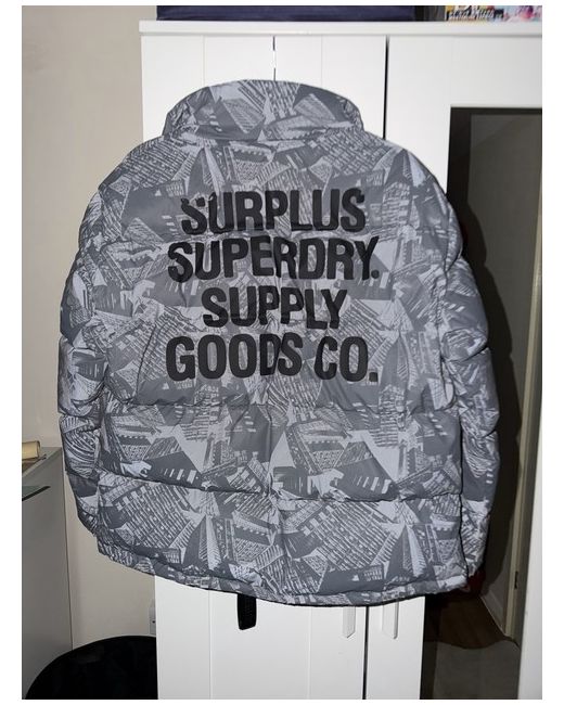 This Superdry Unisex Reflective Puffer Jacket in size XS/S is a stylish choice for the winter season. Made with nylon outer shell material and lined with polyester, it offers warmth with a weight of 300. The black jacket features a zip closure, reflective accents, and the Superdry logo. Perfect for casual occasions and walking activities, this regular fit jacket is a practical and fashionable addition to any wardrobe. Designed for men, this puffer jacket is a versatile option for staying cosy and on-trend during the colder months. RRP £230 and now not sold by Superdry. Reflective. Unworn.