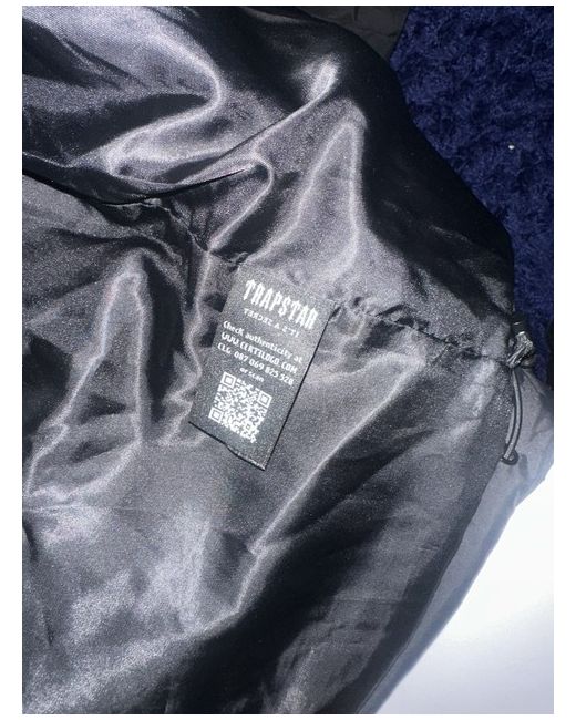 The Trapstar X Cough Syrup Puffer Jacket is a stylish and versatile addition to any man's wardrobe. Made from heavyweight polyester, this black puffer jacket is perfect for winter and casual occasions. With a regular fit and zip accents, this jacket combines comfort and style effortlessly. The softshell fabric and polyester lining ensure warmth and durability, making it a practical choice for walking and everyday wear. Machine washable for easy care, this jacket is a must-have for those looking for a trendy yet practical winter wardrobe staple. The qr code works and takes to authenticity page.