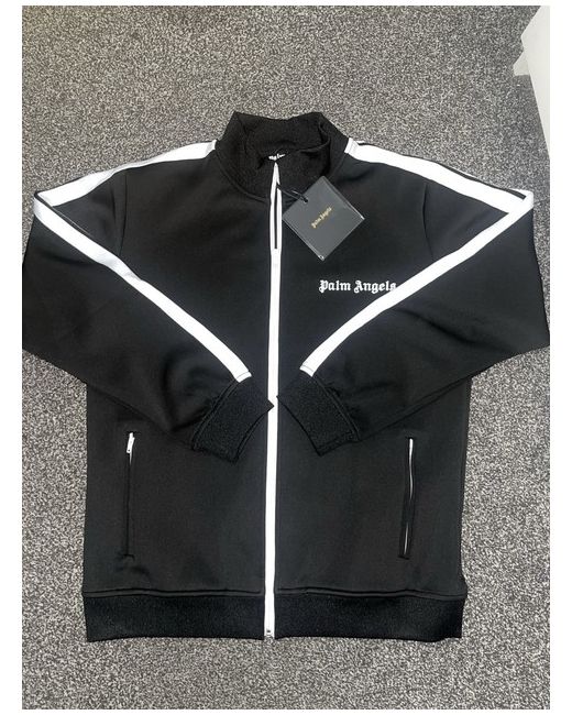 Brand new, unused medium sized palm angels tracksuit. The Palm Angels Men's Tracksuit in Black/White, size Medium, is a stylish and comfortable option for men's activewear. Made from polyester, this 2-piece set includes a track jacket with long sleeves, a zip closure, and the brand's iconic logo accents. The track pants also feature a striped pattern, making it a versatile choice for the summer season. With a regular fit and being machine washable, this Palm Angels tracksuit is a practical and fashionable addition to any man's wardrobe.