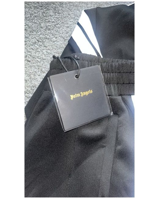 The Palm Angels tracksuit is a stylish and comfortable activewear set perfect for men. The set includes a track jacket with long sleeves and a zip closure, featuring a black colour with a striped pattern and the brand's logo accent. The track pants are made from polyester and are machine washable, making them easy to care for. Ideal for summer, this 2-piece tracksuit is a fashionable choice for those seeking a blend of style and functionality in their activewear collection.