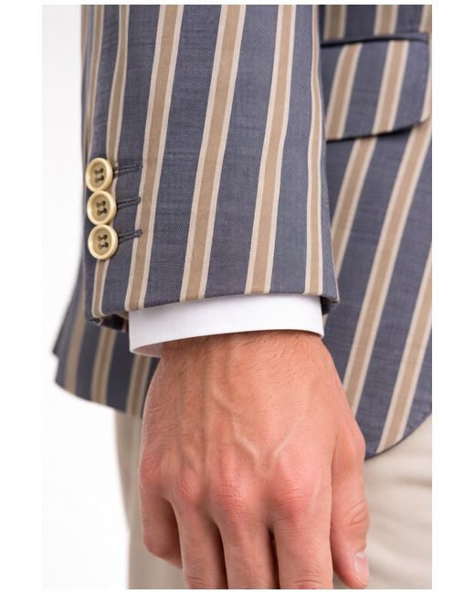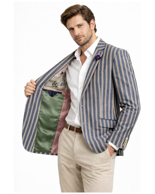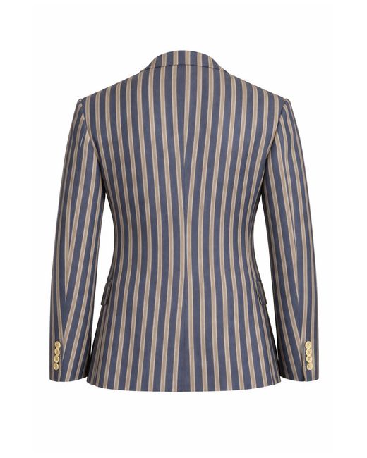 Ideal for pairing with chinos or tailored trousers for an effortless regatta-ready look. 🌊Blue Beige Striped Boating Jacket – Wool Blend Blazer – Henley Regatta Style ⚓. 🪡 Gold-tone buttons for classic boating style.