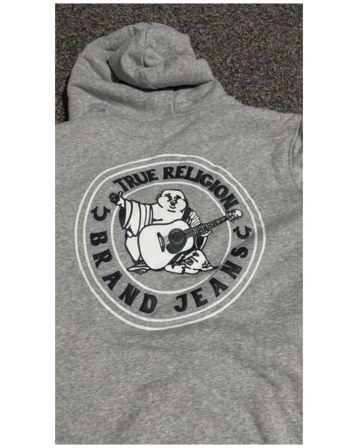 The True Religion Fleece Lined Jacket is a stylish and comfortable choice for the spring season. Made from cotton with a cozy fleece lining, this jacket features a zip closure and logo accents. The grey colour and regular fit make it suitable for casual occasions, while the polyester insulation adds extra warmth. Perfect for walking or everyday wear, this jacket is machine washable and designed by the reputable brand True Religion. Stay on-trend with this full zip jacket in size L for men who appreciate quality and style.