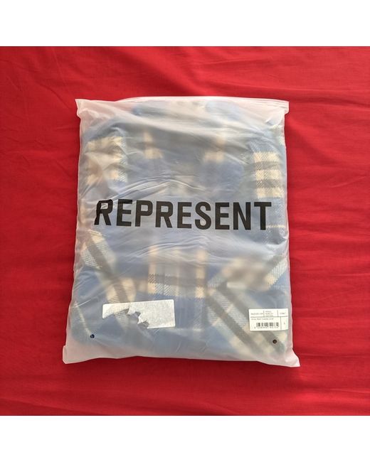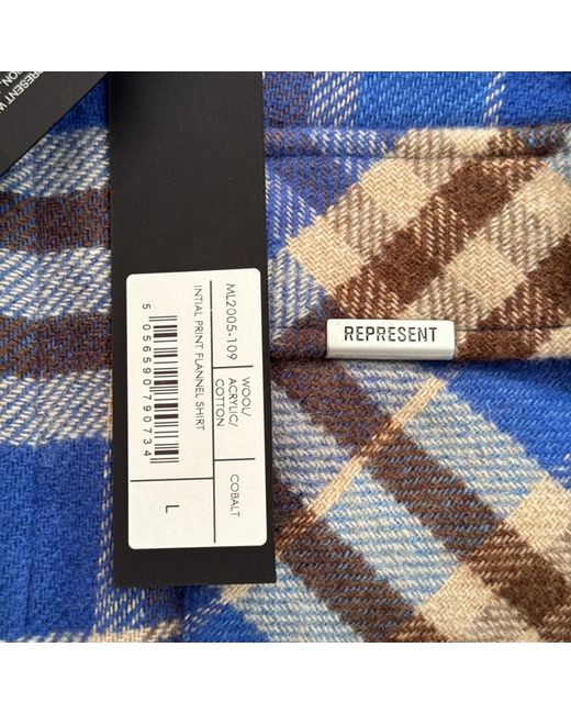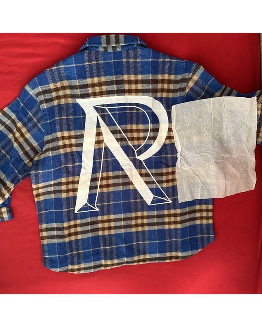 Men's Blue Flannel Check Shacket Jacket Large Logo Bling RRP 225 BNWT