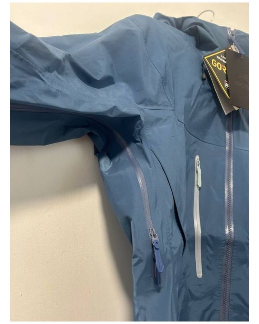 The Arc'teryx Alpha SV Jacket in size small and blue colour is a versatile outerwear option for men. Made with a durable nylon outer shell and insulated with polyester, this jacket is perfect for winter activities like hiking. With a regular fit and softshell fabric type, it provides both comfort and warmth, while also being machine washable for easy care. The stylish design with logo accents and a windbreaker style makes it a practical and fashionable choice for casual occasions in cold weather.