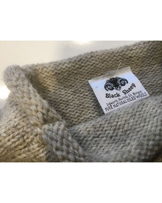 The smuggler sweater is a medium weight jersey with timeless appeal . It is HAND KNITTED and features a straight pie-crust edge on cuffs hem and neckline giving a relaxed., versatile and effortless look. It is size large and cost £140. It is made from 100% pure British wool. The first photo is the same style jumper in dark grey .See website .