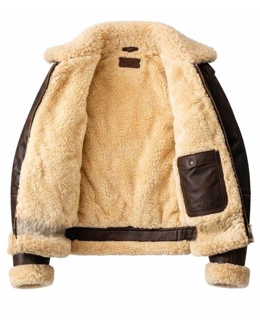Made to order, Materials: Metal, Brass, Goat leather Discription: Genuine leather outer with warm shearling lining 2.Classic B3 aviator bomber jacket design 3.Soft shearling fur collar, cuffs & hem 4.Heavy-duty front zipper closure 5.Two front flap pockets for utility & style 6.Winter-ready, insulated for cold weather 7.Vintage pilot flight jacket inspired look 8.Handmade craftsmanship for durability 9.Perfect for casual, biker & winter wear 10.Ideal gift for men & leather jacket lovers