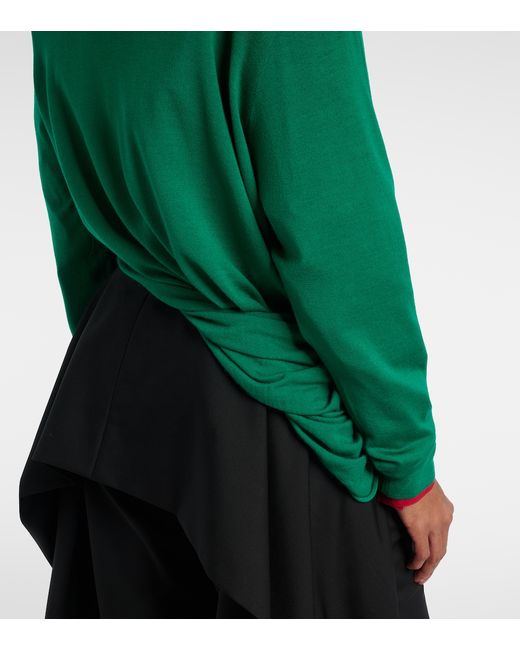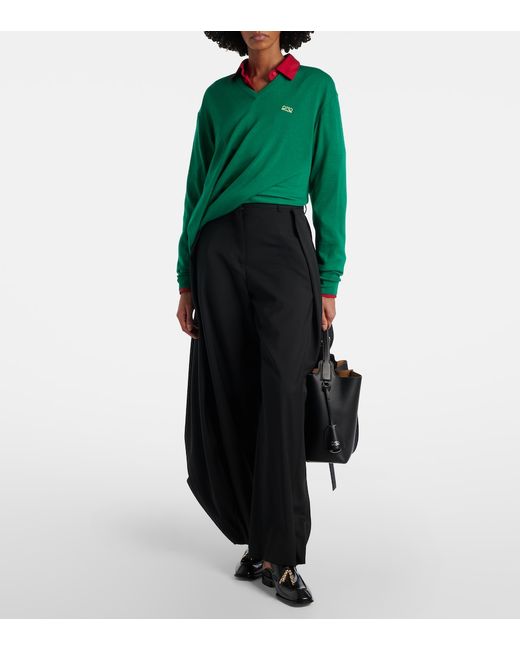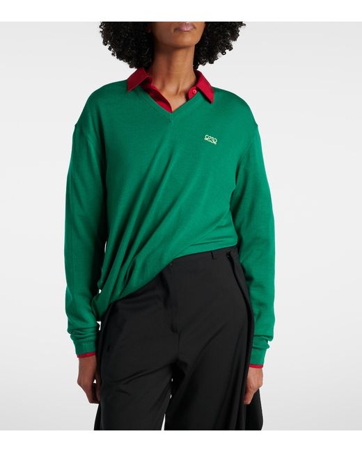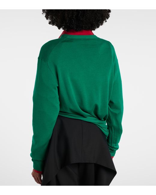 Material: 99% wool, 1% polyamide. Care instructions: dry clean. Made in Italy. Designer color name: Green. Embroidery: 100% polyester. Collar: V-neck. Cuff: ribbed. Wool.