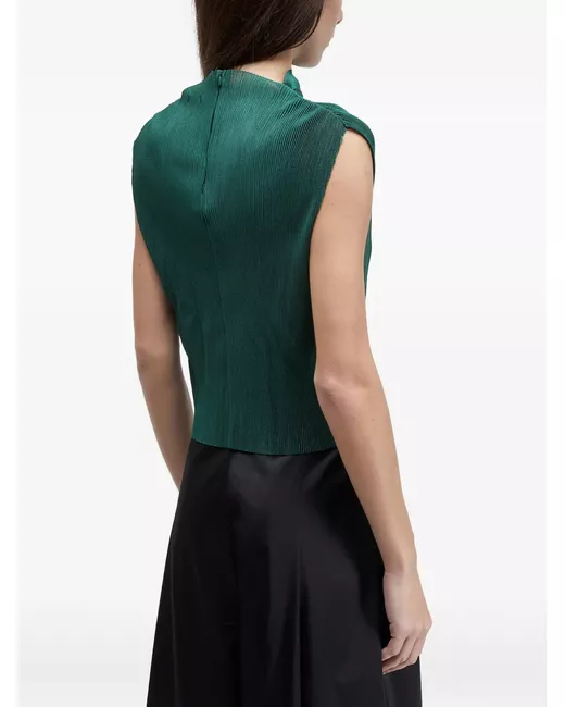 green plissé effect high neck sleeveless rear zip fastening