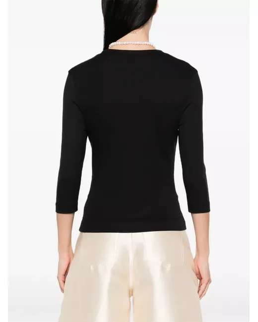 black embellishment round neck three-quarter sleeves ribbed
