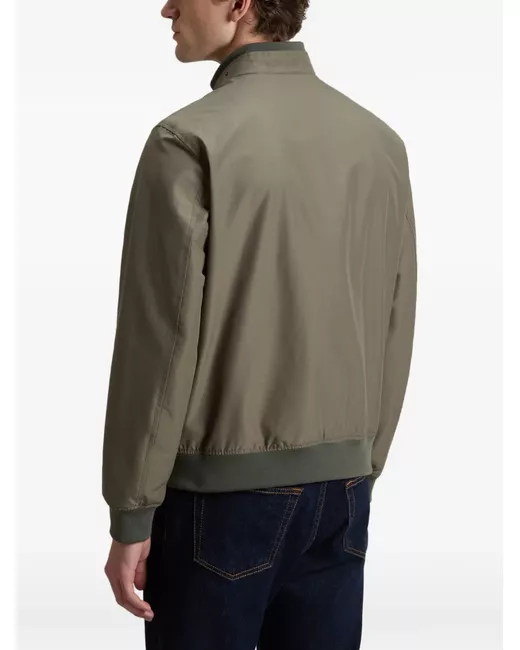 green ribbed stand-up collar logo detail two-way zip fastening side welt pockets ribbed cuffs