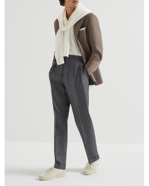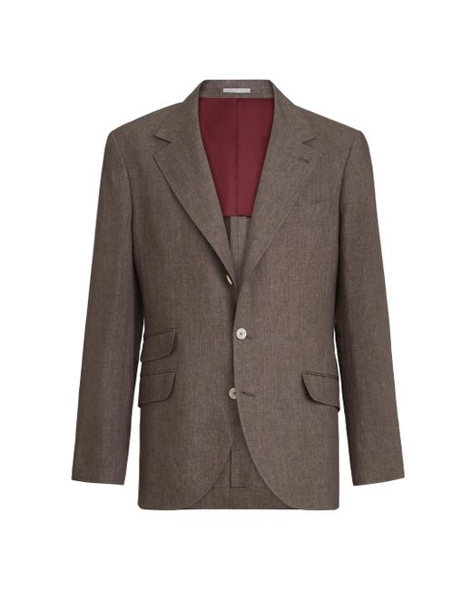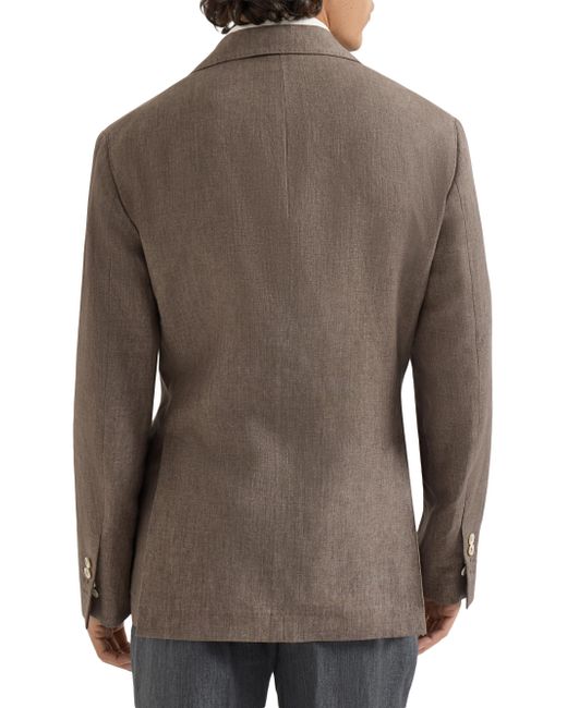 Delave linen deconstructed Cavallo blazer. 3-roll-2 closure with horn buttons Notched lapel Cuffs have four horn buttons and functional buttonholes Welt pockets with flap, ticket pocket with flap and chest pocket Cupro half lining Two interior pockets with button closure and pen holder Double back vent Drop 7 Request dry cleaning at specialist cleaner's only, do not bleach. Do not tumble dry, iron at low temperature 100% linen Made in Italy. Lsd Rtw - Brunello Cucinelli Rtw > Brunello Cucinelli > Saks Fifth Avenue. Brunello Cucinelli. Color: Hazelnut. Size: 32.