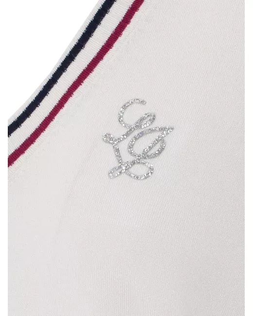 milk white V-neck strass logo in front contrasting striped profiles