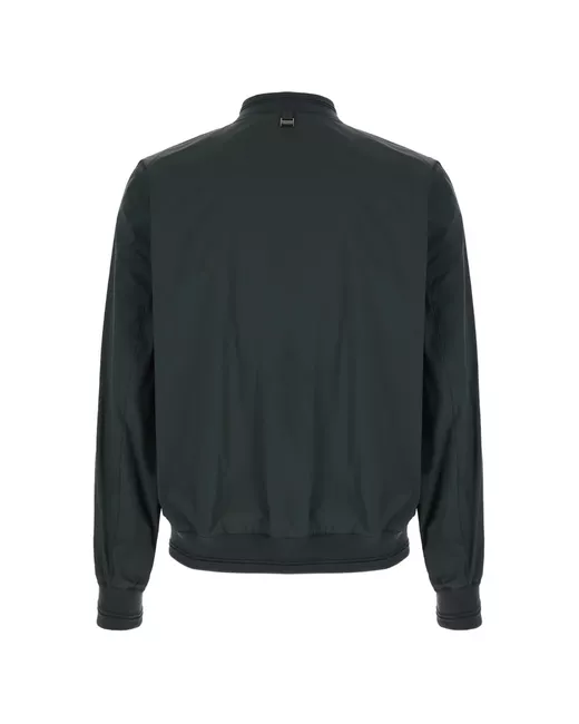 dark green zip fastening ribbed trims button detail round neck straight hem