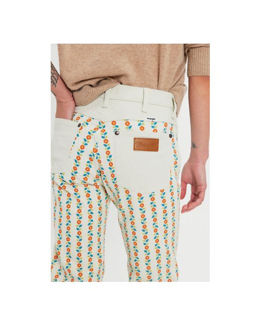 Bring all the vintage vibes with these printed flare jeans from Wrangler. **Fit:** High-rise, flared leg, fitted **Feel:** Comfort stretch denim fabrication **Features:** Five-pocket styling, zip-front closure, print all over Wrangler 70s Printed Flare Jeans at Free People in Folksy Floral, Size: 25