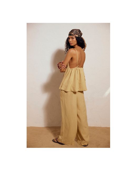 Take effortless to the next level with this timeless, two-for-one set featuring a V-neck tank and coordinating straight-leg pants both featured in a relaxed, linen fabrication for the perfect finishing touch. **Top:** * V-neckline * Adjustable tie shoulder straps * Longline silhouette **Pants:** * High-rise style * Side pockets * Wide-leg silhouette * Elasticated waistband Carmen Set by free-est at Free People in Pampas, Size: XS