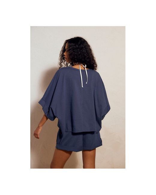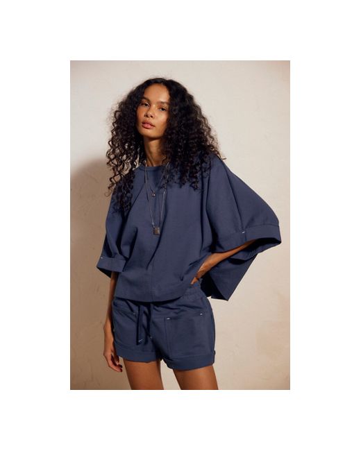 Crafted from a comfy heavyweight cotton, this staple set from free-est features an oversized, billowy tee and relaxed shorts with cuffed hems for the perfect easy-going option. **Top:** * Crew neckline * Dolman short sleeves * Cuffed details * Boxy, oversized fit **Shorts:** * Shirred drawcord waistband with ruffle detail * Cuffed hem * Pull-on style Leandra Short Set by free-est at Free People in Dark Denim, Size: XS