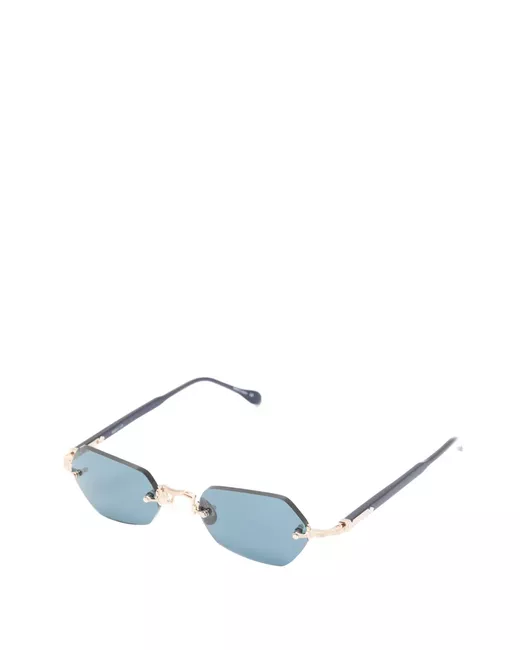 blue geometric shape rimless nose pads These glasses come with a protective case.