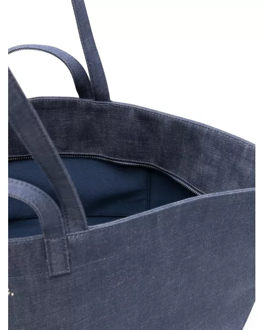 blue cotton top handle zip fastening accessory charm internal slip pocket rectangular shape