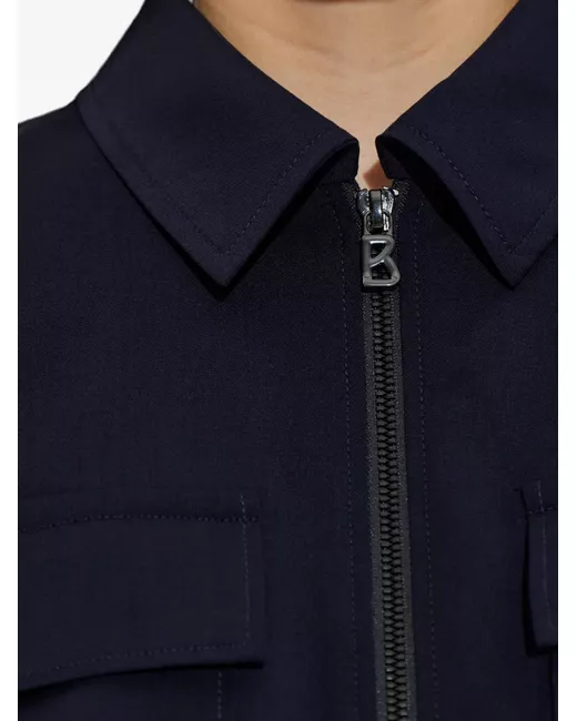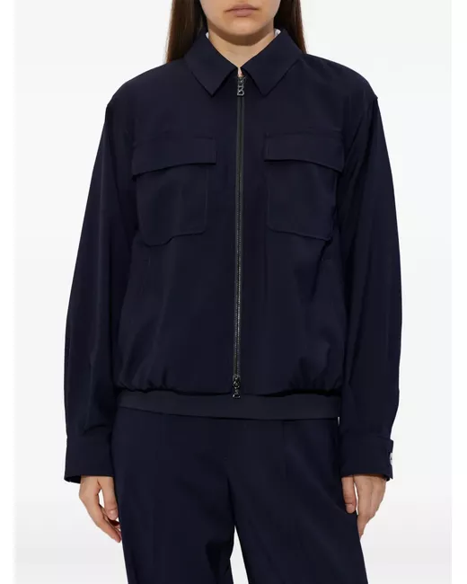 navy blue zip fastening point collar front flap pockets elasticated hem