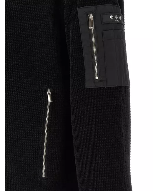 black waffle chenille ribbed knit details zip closure pockets