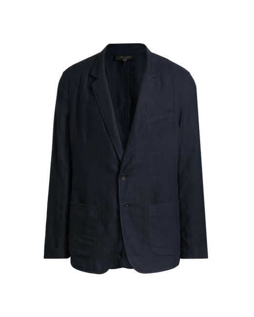 This Butler blazer from rag & bone is crafted of lightweight linen and features side patch pockets, a chest welt pocket, and two-button closure. Notched lapels Long sleeves, button cuffs Chest welt pocket Side patch pockets Two-button closure 100% linen Dry clean Imported SIZE & FIT About 29.5" from shoulder to hem Model measurements: 6'2" tall, 40" chest Model is wearing a US size 40R ABOUT THE BRAND In 2002, rag & bone founder Marcus Wainwright combined his British heritage with a downtown-New York aesthetic to set the tone for the label. At the heart of the edgy-yet-laid-back brand is its focus on quality craftsmanship and attention to detail. The epitome of cool, off-duty style, it's no wonder the signature denim and easy knits are favored by many. Mens Denim & Contemp - Mens Denim > Rag & Bone > Saks Fifth Avenue. rag & bone. Color: Salute. Size: 38.