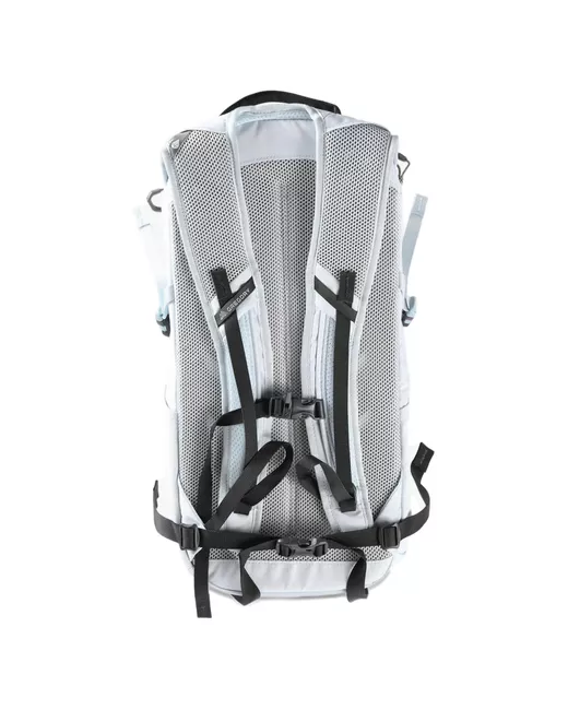 white grid pattern mesh panels adjustable straps buckle fastening top handle