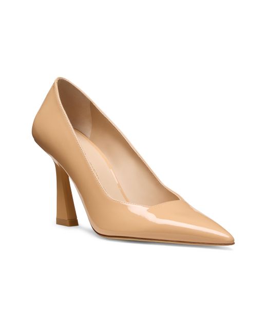 These Vinnie pumps from Stuart Weitzman, crafted of glossy patent leather, feature a pointed toe and an 85mm heel. Point toe Slips on Patent leather upper Leather lining Leather sole Made in Spain SIZE Heel: about 3.25" (85mm) ABOUT THE BRAND Designer Stuart Weitzman started his career designing for his father's shoe company, before launching his own brand in 1986. Known for his glamorous pumps and over-the-knee boots, Weitzman has also incorporated unique materials in his designs, ranging from Lucite and wallpaper to cork, vinyl and even gold. Today, the label continues to create classic, feminine silhouettes that balance both comfort and style. Women's Shoes - Stuart Weitzman W Shoes > Stuart Weitzman > Saks Fifth Avenue. Stuart Weitzman. Color: Adobe. Size: 8.5.