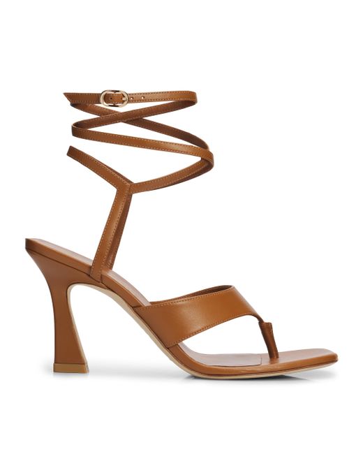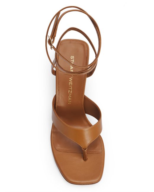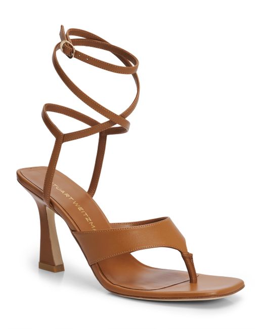 The Vinnie thong sandals from Stuart Weitzman are crafted of leather, featuring an ankle wrap design and angled heel. Open toe Buckle closure Leather upper Leather lining Leather sole Made in Spain SIZE Heel: about 85mm (3.25") ABOUT THE BRAND Designer Stuart Weitzman started his career designing for his father's shoe company, before launching his own brand in 1986. Known for his glamorous pumps and over-the-knee boots, Weitzman has also incorporated unique materials in his designs, ranging from Lucite and wallpaper to cork, vinyl and even gold. Today, the label continues to create classic, feminine silhouettes that balance both comfort and style. Women's Shoes - Stuart Weitzman W Shoes > Stuart Weitzman > Saks Fifth Avenue. Stuart Weitzman. Color: Boho Tan. Size: 10.
