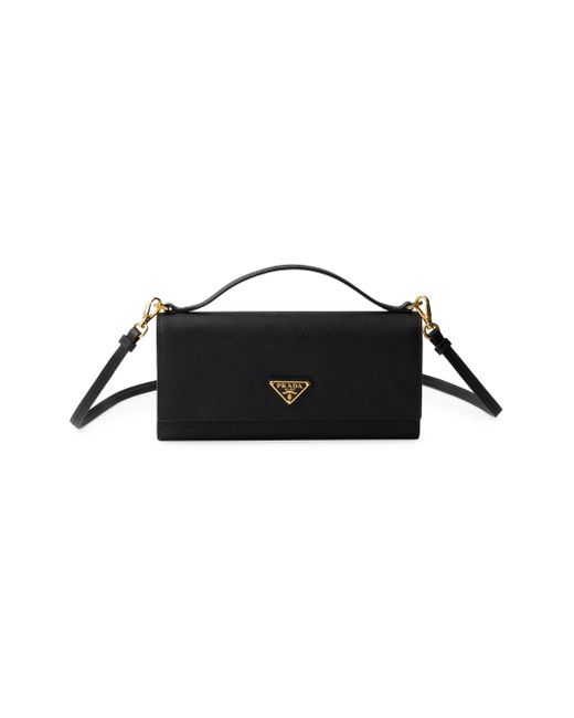 Snap closure Enameled metal triangle logo One bill compartment Six card slots One internal pocket Zippered coin compartment Moiré and Saffiano leather lining Adjustable and detachable Saffiano and leather shoulder strap 100% Calf leather 20 cm W x 9.5 cm H / 7.9'' W x 3.7'' H Imported. Lsd Handbags - Prada Handbags Access > Prada > Saks Fifth Avenue. Prada. Color: Black.