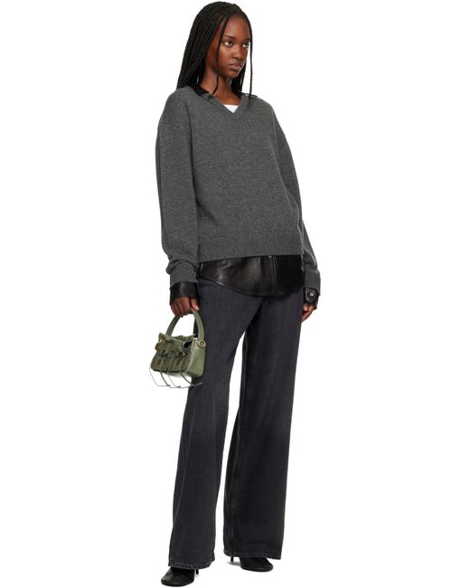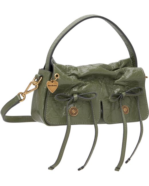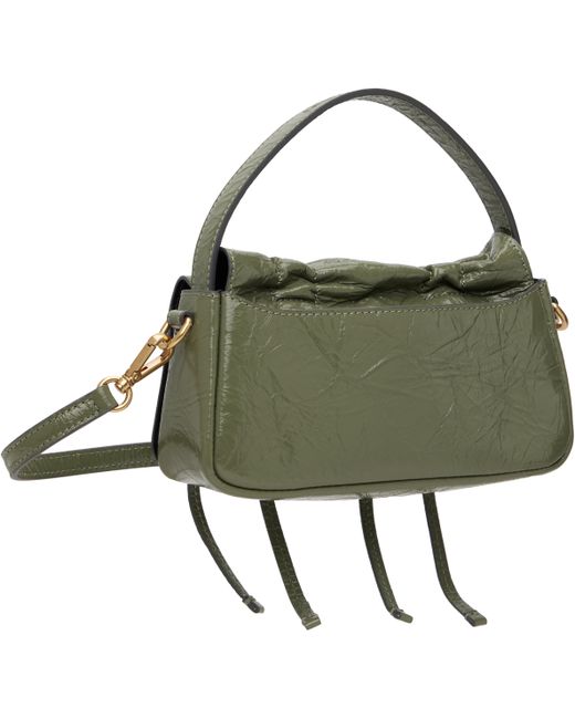 Crinkled patent goatskin top handle bag. · LWG-certified goatskin · Logo embossed at carry handle · Detachable crossbody strap · Logo charm and drawstrings at face · Magnetic flap · Card slot at interior · H4.5 x W8.5 x D2.5 Supplier color: Wheat green