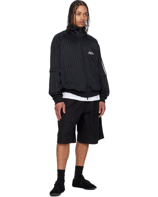 Recycled polyester jersey track jacket. · Pinstripes throughout · Stand collar · Two-way zip closure · Logo bonded at chest and cuff · Welt pockets at waist · Rib-knit hem and cuffs · Raglan sleeves · Signature stripes at sleeve · Detachable cuffs with press-stud fastening · Logo patch at back hem Supplier color: Black/Chalk Pearl