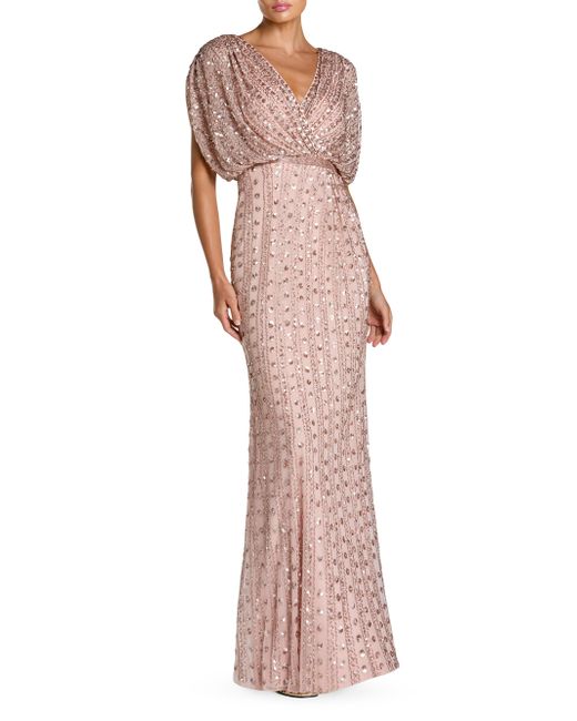 This column gown from Mac Duggal is crafted of delicate sequin-embellished mesh and styled with a beaded waistband. V-neck Short sleeves Concealed back zip closure 100% polyester Lining: 100% polyester Spot clean Imported SIZE & FIT About 59" from shoulder to hem Model measurements: 5'10" tall Model is wearing a US size 4 Please note: This Mac Duggal style includes an attached sash located inside the garment. If the sash is removed, this style cannot be returned. ABOUT THE BRAND Mac Duggal's first eveningwear hit, in the mid-1980s, was an A-line dress crafted from tulle with handpainted stars decorated its lining. Since then, the label has become an eveningwear go-to and Hollywood favorite. Nicknamed the "king of bling," the eponymous designer uses sophisticated ornamentation and eye-catching fabrics as a nod to his Indian heritage. Dress Collections - Mac Duggal > Mac Duggal > Saks Fifth Avenue. Mac Duggal. Color: Vintage Rose. Size: 4.