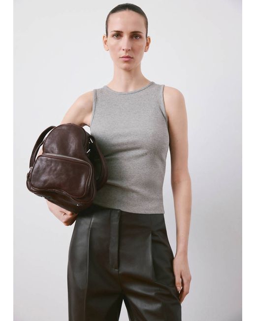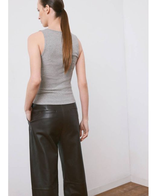 Women's Gray Ribbed cotton-blend top