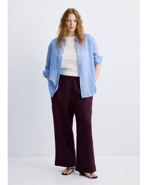 100% linen fabric, Straight design, Long design, Mid-rise, Two side pockets, Adjustable Elastic Waistband, No Fastening, Available Plus, Total look