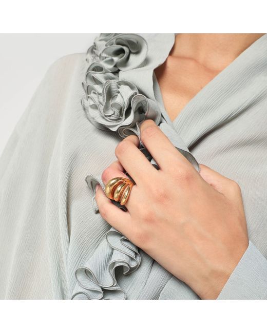 Panconesi ring in sterling silver plated with 18-carat gold characterized by three bands and a non-adjustable design.