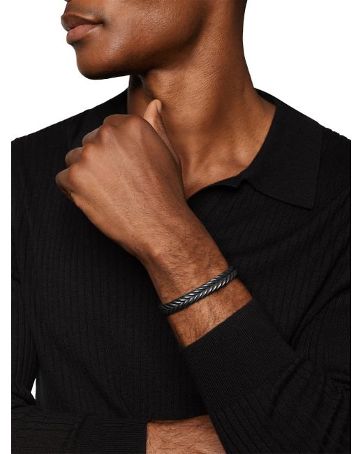 Marked by its double-helix pattern, Chevron is a mirror image of Cable, the house's signature motif. The ancient V-shaped design offers a sense of modern sophistication, expertly crafted in refined materials, with deep cuts, precise angles, and a play of light and dark to evoke a feeling of forward momentum in the pursuit of excellence. Its elevated look fuses luxury and practicality for everyday wear, imbuing an essence of timelessness and versatility. Black titanium Bracelet, 10mm State-of-the-art flexibility and clasp-free silhouettes deliver exceptional comfort and ease. Size Large (L) fits wrists up to 7.90 inches Size Medium (M) fits wrists up to 7.29 inches Size Small (S) fits wrists up to 6.67 inches Imported ABOUT THE BRAND David, a sculptor, and his wife, Sybil, a painter, launched their innovative jewelry brand in 1980 in New York City. Since then, the American design house has pioneered cutting-edge collections-from its iconic combination of sterling silver and diamonds to signature pinky rings. Today, with their son Evan, the Yurmans continue to deliver timeless pieces inspired by nature, art, ancient symbols and Manhattan's stunning architecture. Lsd Jewelry - David Yurman > David Yurman > Saks Fifth Avenue. David Yurman. Color: Black. Size: Small.