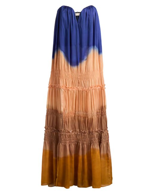 The Veil strapless gown from Ulla Johson is crafted of silk, featuring an ombré-effect print. Smocked tiers with fluid draping lend to this flowy silhouette. Sweetheart neck Strapless Back zip closure 100% silk Dry clean Imported SIZE & FIT About 53.5" from topline to hem Model measurements: 5'10" tall Model is wearing a US size 4 ABOUT THE BRAND Manhattan-based designer Ulla Johnson credits her archaeologist parents as inspiration for her namesake ready-to-wear label, founded in 1998. Natural fibers, easy fits and meticulous finishes are seen in each collection, which incorporate sweeping silhouettes, and printing and dyeing techniques from around the world. Contemporary Sportswear - Contemporary Lifestyle > Ulla Johnson > Saks Fifth Avenue. Ulla Johnson. Color: Moontide. Size: 0.