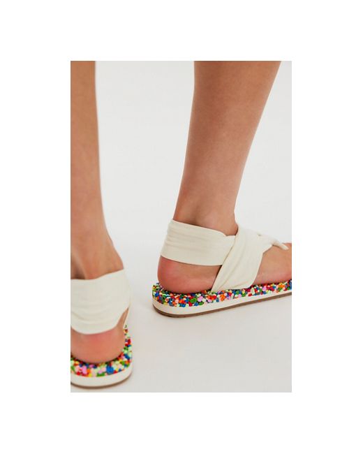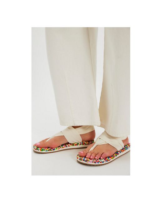 Ultra-comfortable and ultra-playful, these supportive sandals from Sanuk feature two-way stretch jersey uppers in their original sling design, plus a beaded foam footbed for a bouncy, bubble-like feel with every step. * Wide stretchy straps made with 40% REPREVE (ocean polyester yarn by UNIFI) * Slip-on strappy thong sandals * Resilient ETPU beaded foam footbed with bouncy underfoot sensation * Happy U tread sponge rubber outsole made with 53% recycled material * Water-friendly design Sanuk Sling Bubblecush Sandals at Free People in Rainbow Confetti, Size: US 6