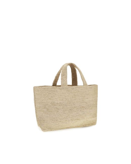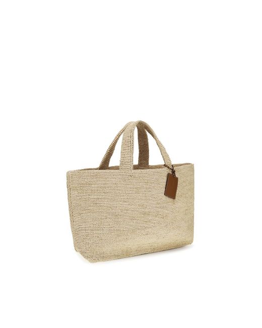 The large New Sunset raffia Tote Bag by Manebi is handmade from raffia fabric, crafted with precision by local artisans in Madagascar. Featuring two sturdy handles, this bag is ideal for a summery, casual look. Inside, a practical pocket with a Manebi cotton patch offers improved organization, combining style and functionality in a single accessory. Season: SS26 Dimension: 39x30x18 Composition: 100% Raffia