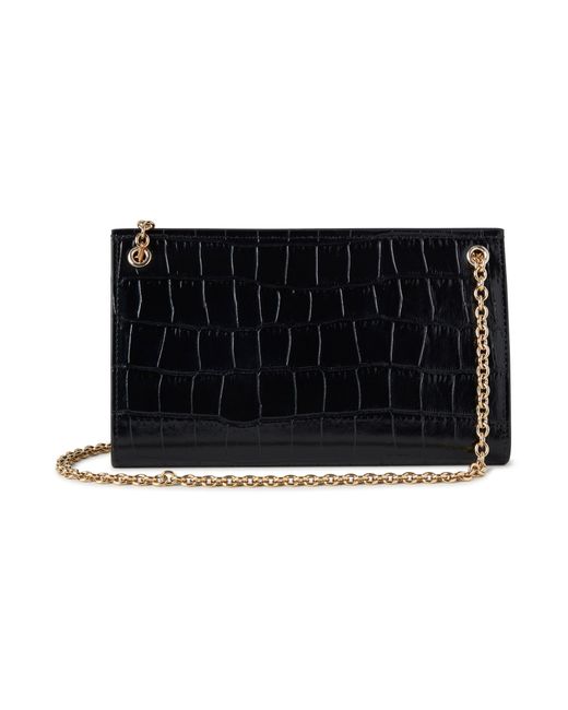 This Amberley Clutch features our distinctive Rider's Lock. The chain strap is detachable, allowing it to be worn as a chic shoulder bag or held as a streamlined clutch. It has an optimised interior for its small size, offering a main compartment, zipped pocket and credit card slip pockets. Details: An equestrian-inspired clutch bag with distinctive Rider's Lock detail. Soft Gold hardware finish Rider's Lock closure Detachable chain strap One main compartment One zipped compartment One large slip pocket Six credit card slip pockets Foil embossed Mulberry signature Height 13.2cm Width 22cm Depth 3cm Chain strap Drop 55cm Weight 0.4kg, approximately Material Shiny Small Croc A high-shine cow leather with an embossed croc pattern. This product's code is RL8191-641A100