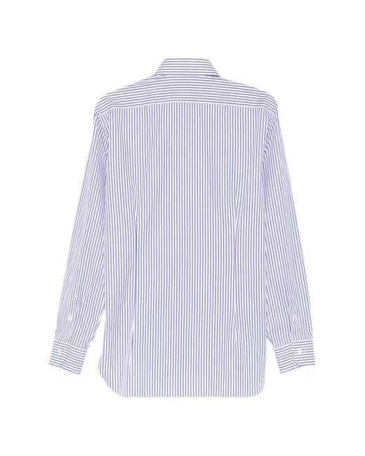 white striped button fastening long sleeves buttoned cuffs curved hem