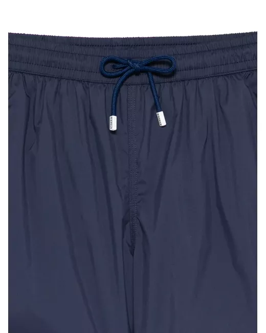 blue elasticated waistband side slits back pocket drawstring straight leg Be mindful to try on swimwear over your own garments.