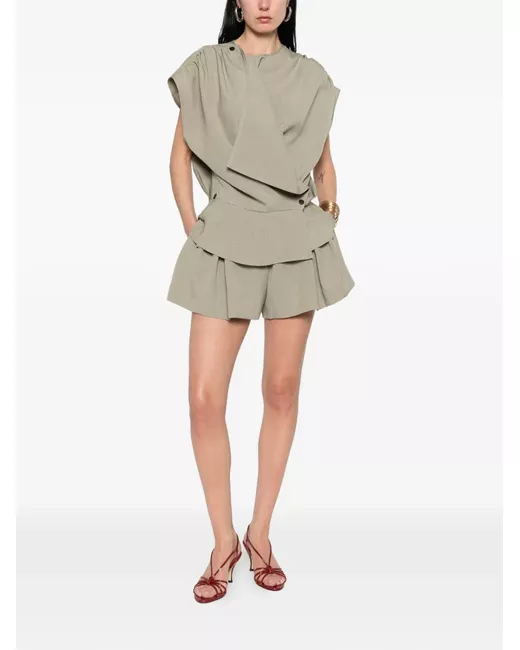 olive green draped front cap sleeves button detail round neck asymmetric closure