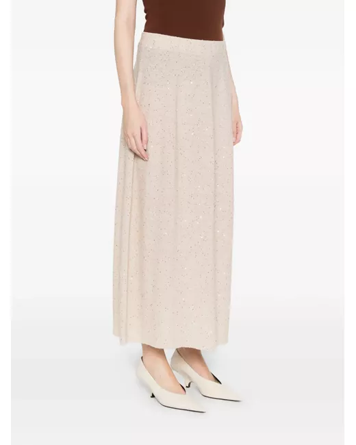 Sequin-embellished knitted midi skirt