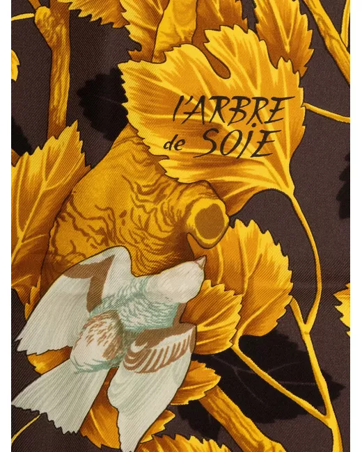 brown/yellow silk leaf print square shape