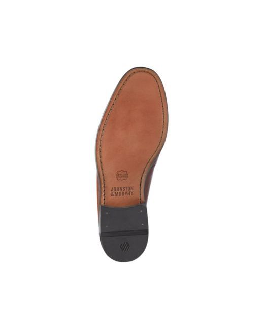 Everyday ease becomes a priority with these Johnston & Murphy slip-on shoes, built with premium leather linings. The cushioned footbed and leather outsoles with rubber toplift offer responsive support and dependable traction.