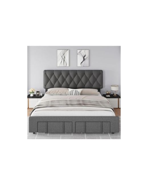 Enjoy the perfect blend of style and storage with this grey upholstered queen platform bed frame, featuring storage drawers and solid wooden slats, it supports your mattress securely without a box spring, easy to assemble and ideal for modern bedrooms, it offers both comfort and practicality.